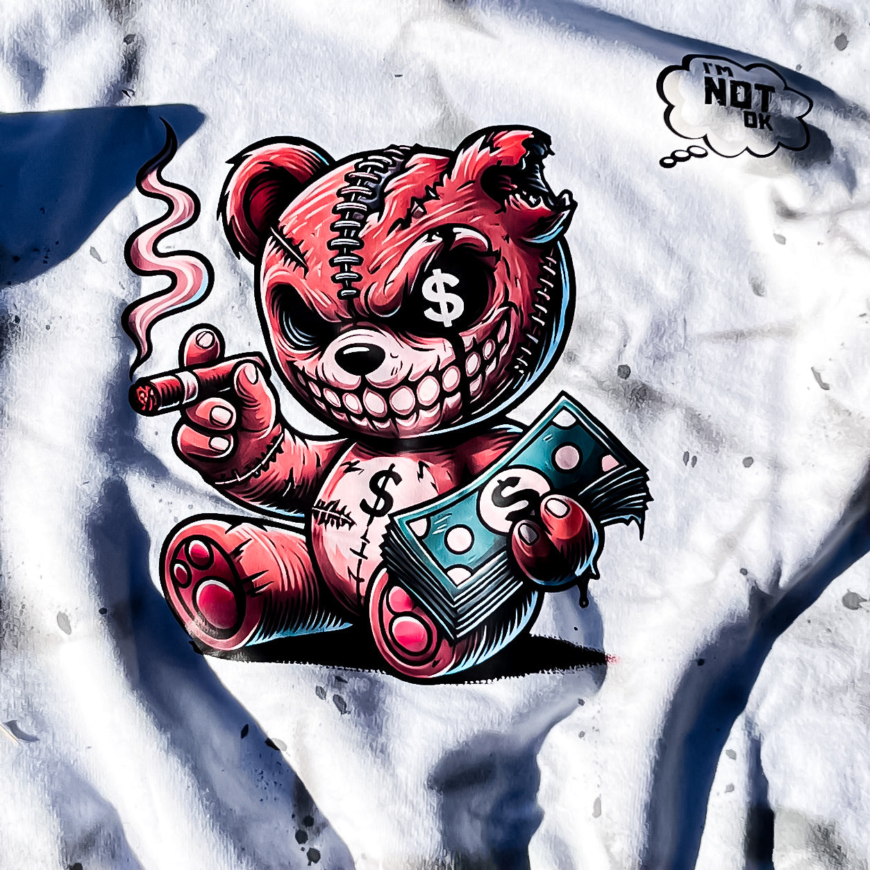 - Prince Evan’s Revenge Bear graphic — stitched, scarred, and smiling through the pain while holding money and a cigar.