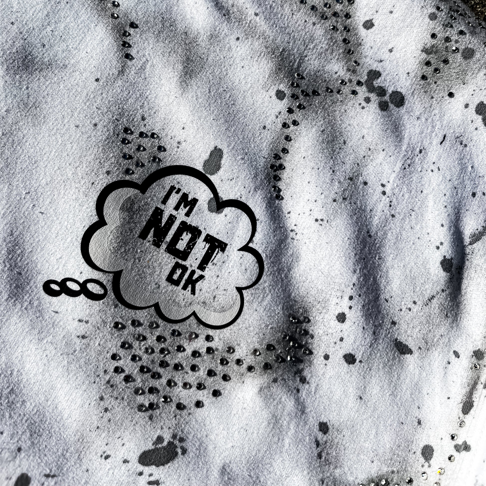- “I’m Not OK” thought bubble printed on both sleeves, symbolizing the inner battle that follows you wherever you go.